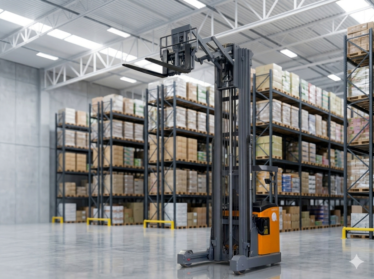 Uno de los Montacargas más completos, con capacidad de elevación de hasta 8 metros y una capacidad de carga de hasta 2 toneladas, su principal característica es su sistema “reach truck” y “scissor”.