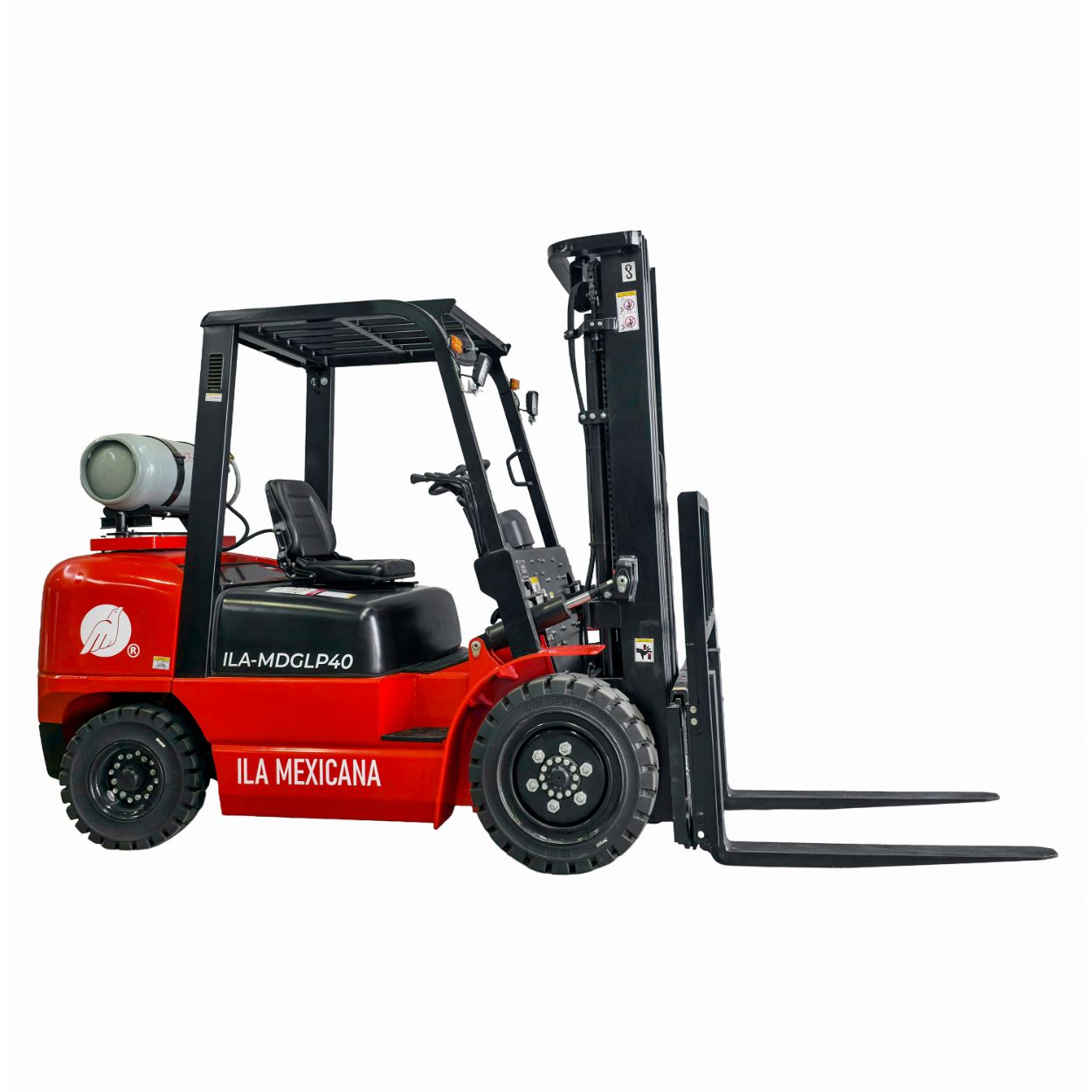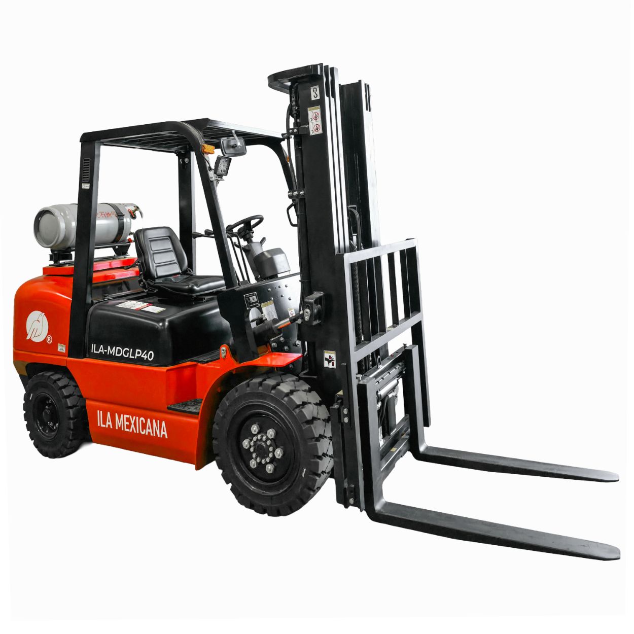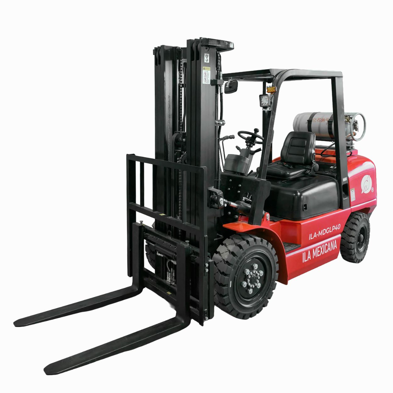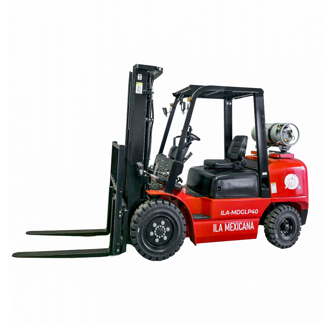 El ILA-MDGLP40 es un montacargas de combustión dual (Gas LP/Gasolina) diseñado para operaciones que requieren máxima potencia y eficiencia. Con una capacidad de carga de 4 toneladas y una elevación de hasta 5 metros, este equipo ofrece un desempeño confiable en interiores y exteriores, adaptándose a almacenes de gran volumen y entornos industriales exigentes.