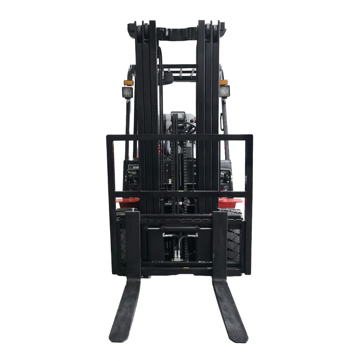 Su inclinación de mástil y levantamiento libre de horquillas permiten manipular cargas en altura con precisión y estabilidad, mientras que el desplazador lateral facilita ajustes milimétricos sin necesidad de reposicionar el montacargas. Equipado con llantas sólidas y una estructura reforzada, garantiza tracción segura y durabilidad incluso en superficies irregulares o de alto tráfico.