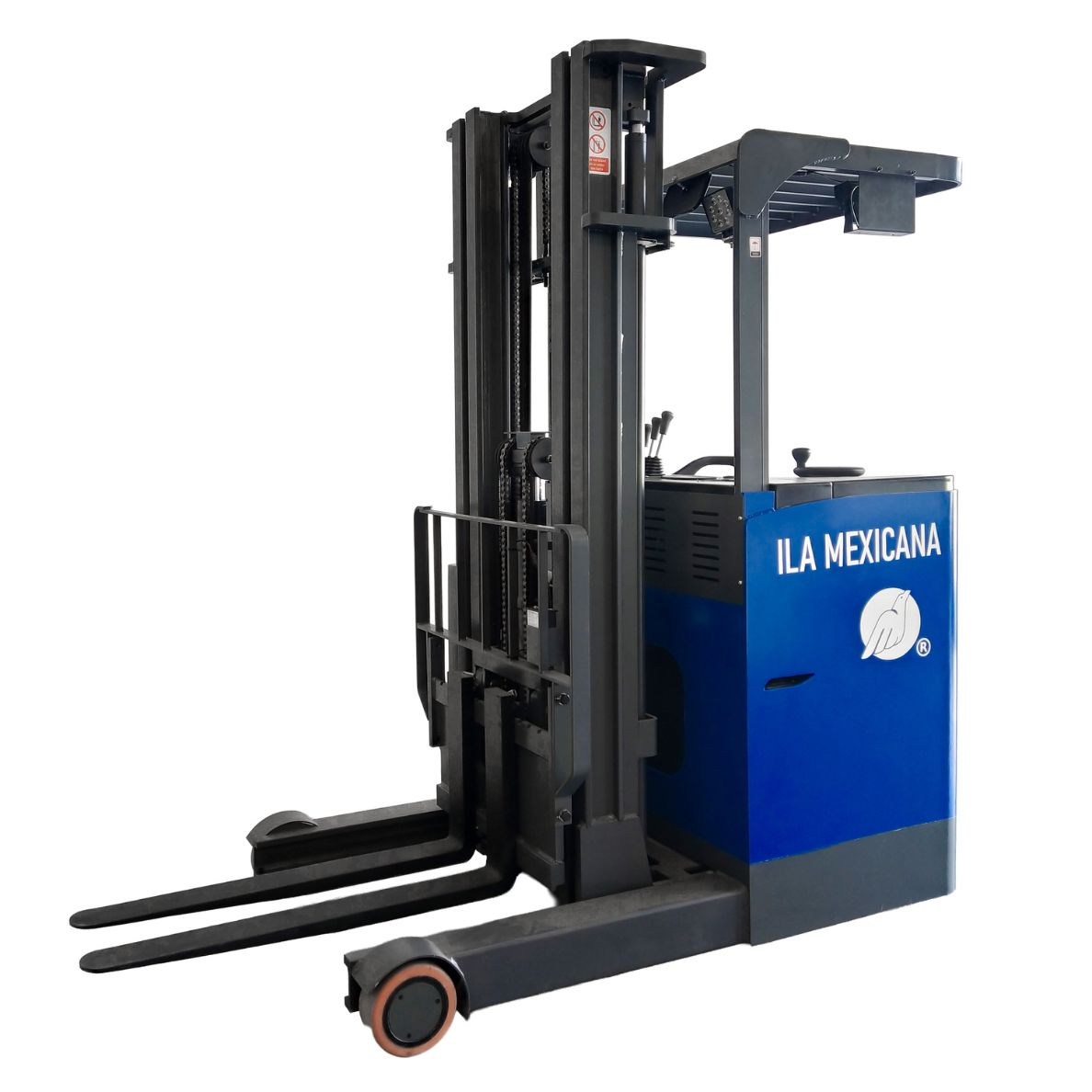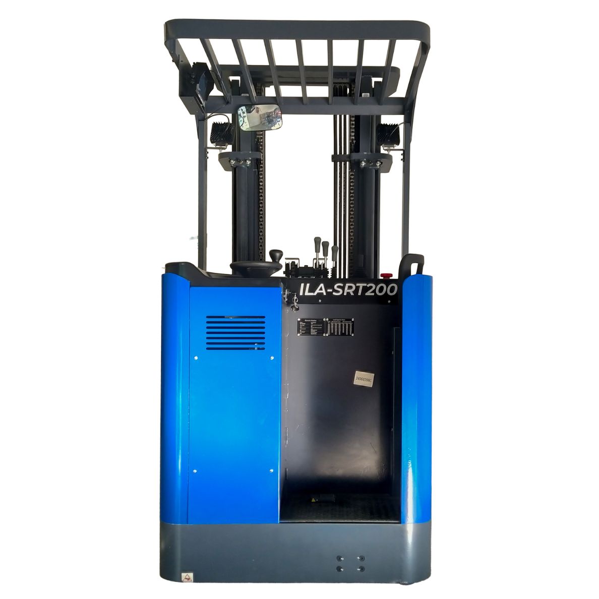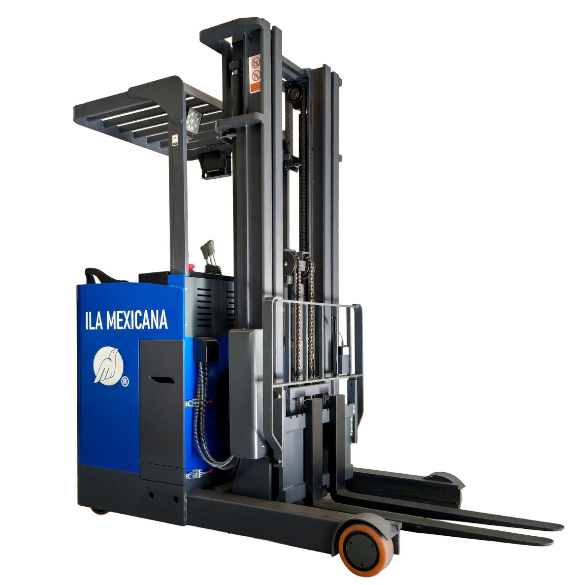 El ILA-SRT2000 es un montacargas eléctrico tipo reach truck, especialmente diseñado para almacenes con racks altos y pasillos estrechos. Con una capacidad de carga de 2 toneladas y elevación de hasta 5.5 metros, permite manipular pallets en altura con precisión y seguridad, optimizando cada movimiento dentro del almacén.